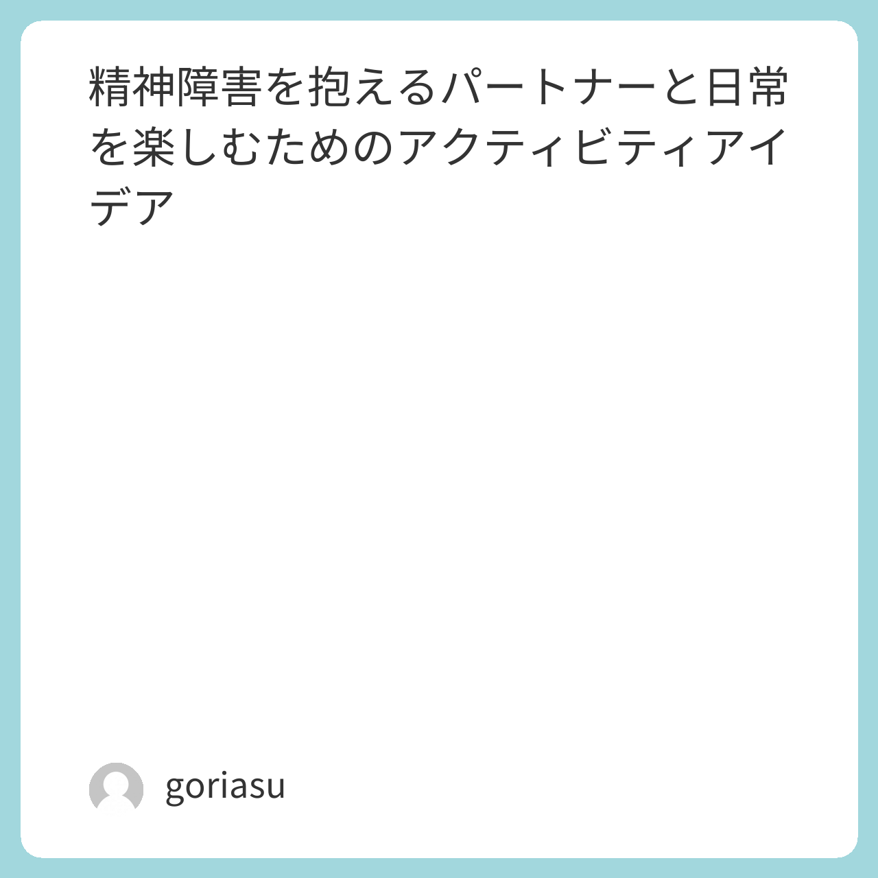 精神障害を抱えるパートナーとの時間を大切にするためには、ストレスを軽減しながら楽しめるアクティビティを取り入れることが有効です。リラックスできる映画鑑賞や自然散策、クリエイティブな活動や読書、ゲームなど、二人で楽しめる時間を過ごすことで、関係を深めることができます。小さなアクティビティでも、パートナーとのつながりを強化し、心地よい時間を共有することができるでしょう。