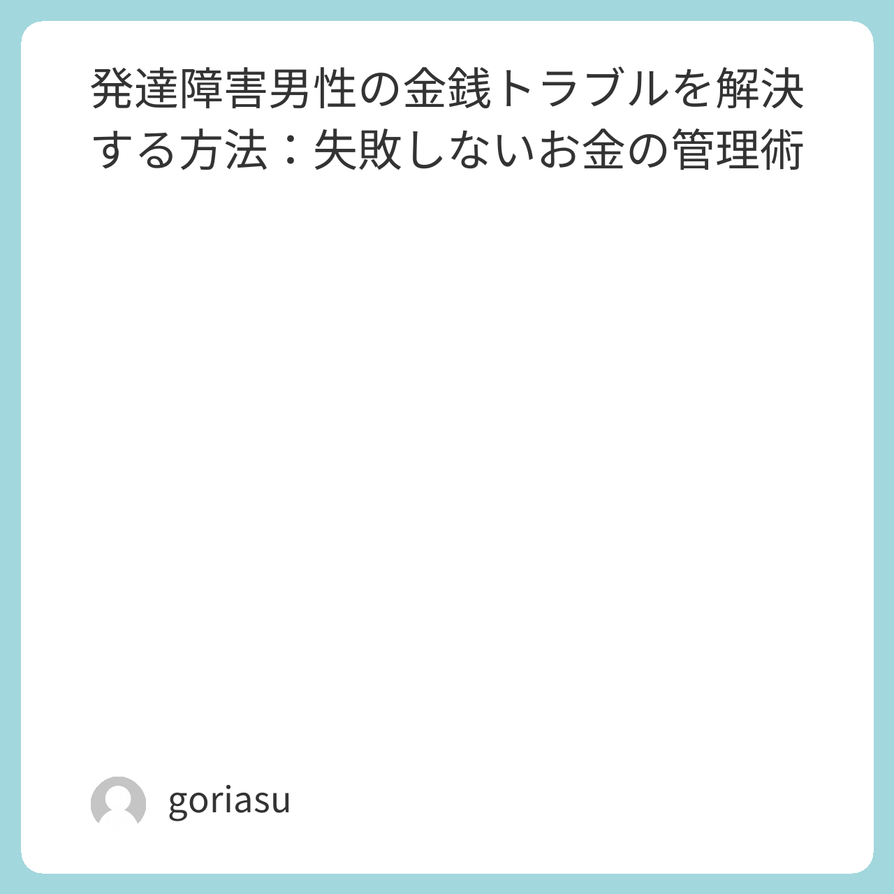 発達障害を持つ男性にとって、金銭管理は大きな課題ですが、いくつかの具体的な方法を実践することで、トラブルを未然に防ぎ、安定した経済生活を送ることができます。自分の特性を理解し、支出を把握し、計画的な管理を行うことで、より安心で豊かな生活を目指しましょう。