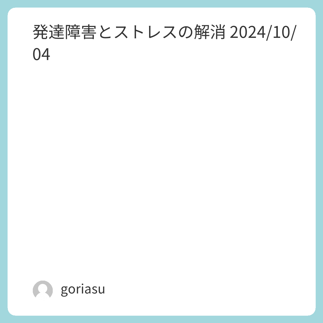 発達障害とストレスの解消 2024/10/04