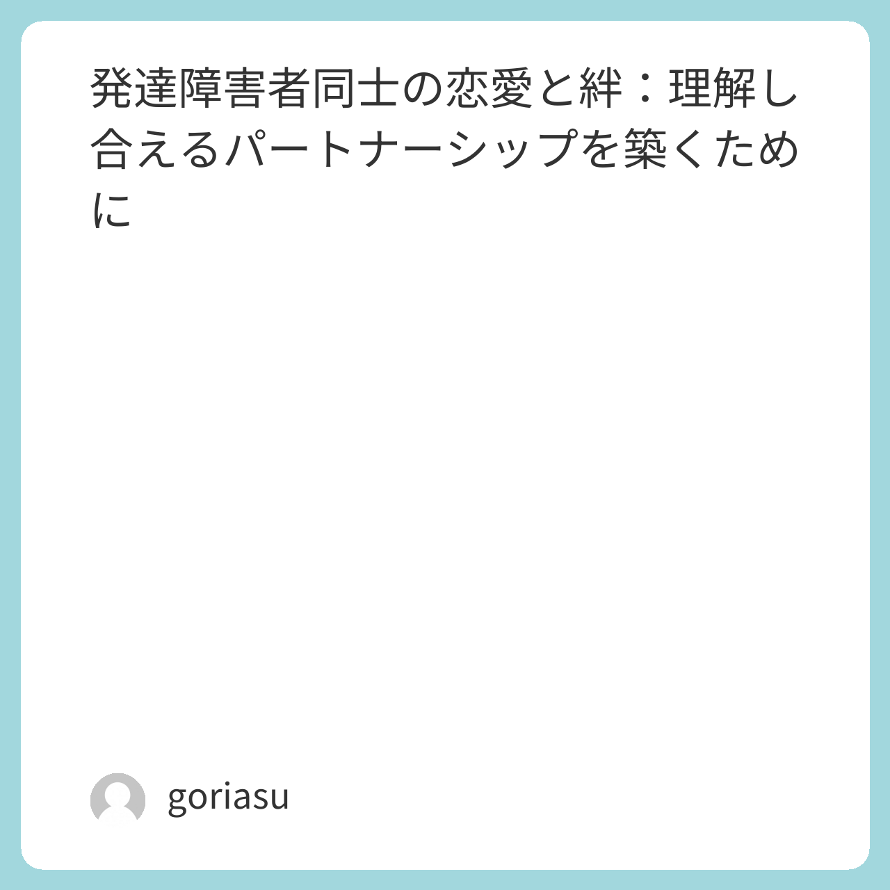 発達障害を持つ二人だからこそ、理解し合える部分があります。それぞれの特性が違っていても、お互いにサポートし、成長するパートナーシップを築くことができます。大切なのは、特性を認め合い、協力しながら二人らしい関係を作り上げること。