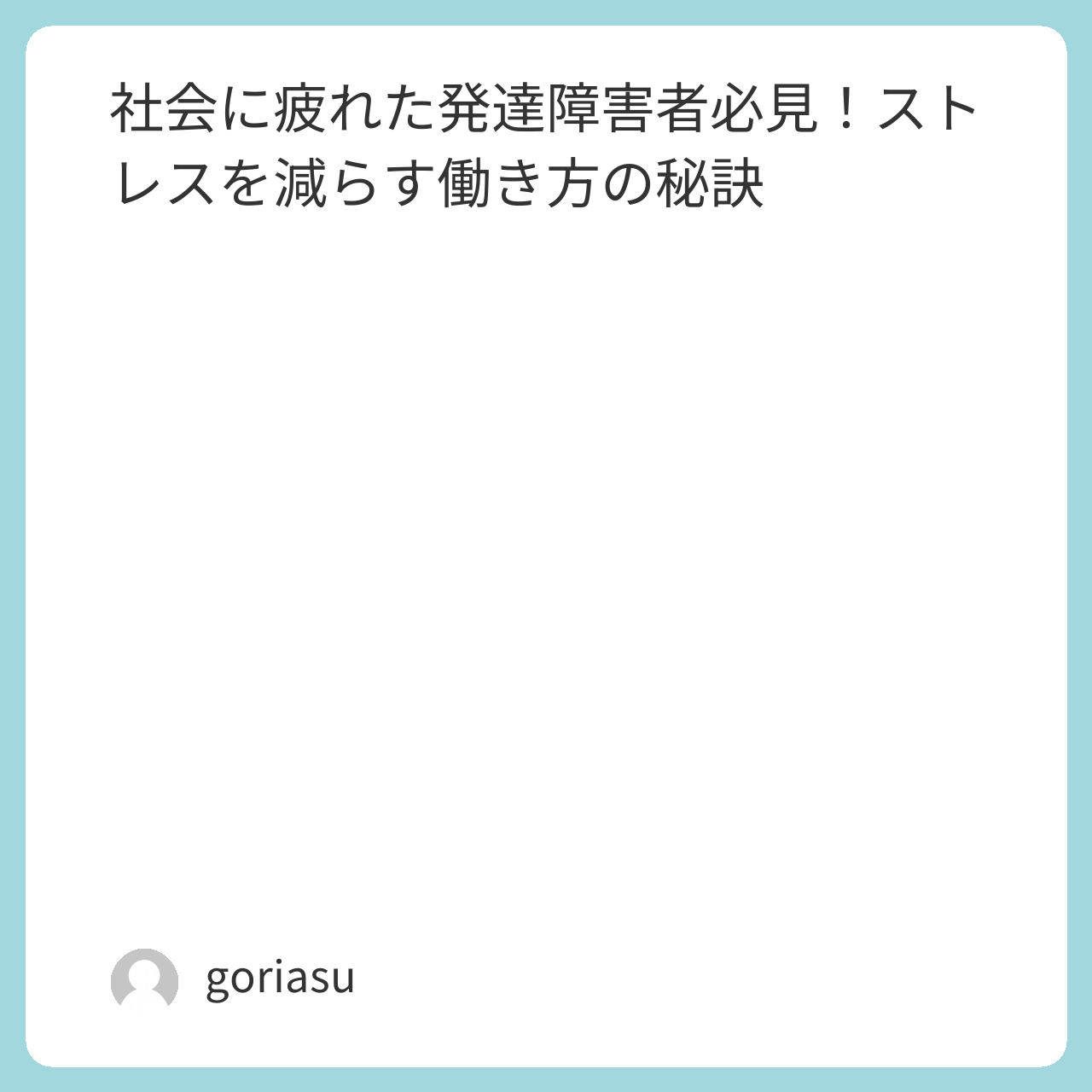 発達障害を持つ僕たちは、どうしても「他の人と同じようにしなきゃ」と思いがちです。でも、それが実は疲れを増やす一因になっているんです。