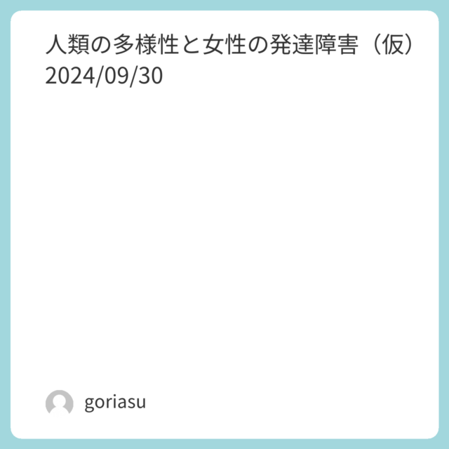 人類の多様性と女性の発達障害(仮) 2024/09/30