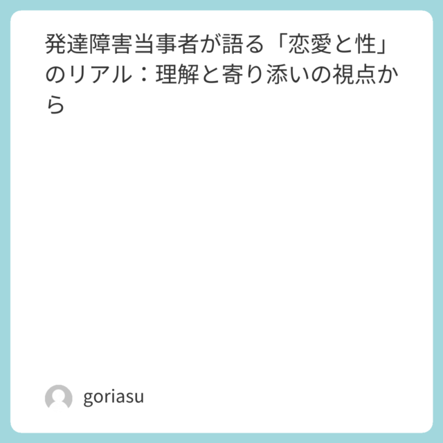 発達障害当事者が語る「恋愛と性」のリアル:理解と寄り添いの視点から