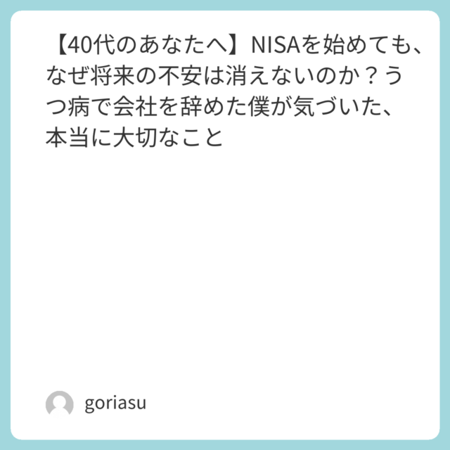 お金 【40代のあなたへ】NISAを始めても、なぜ将来の不安は消えないのか?うつ病で会社を辞めた僕が気づいた、本当に大切なこと
