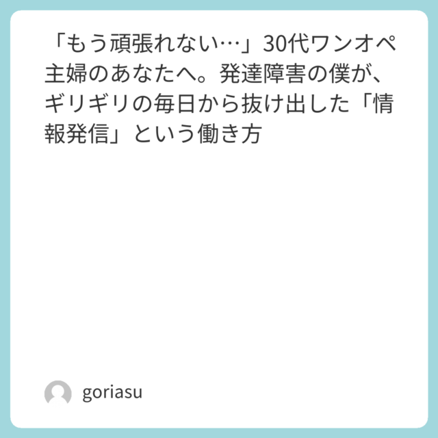 お金 「もう頑張れない…」30代ワンオペ主婦のあなたへ。発達障害の僕が、ギリギリの毎日から抜け出した「情報発信」という働き方