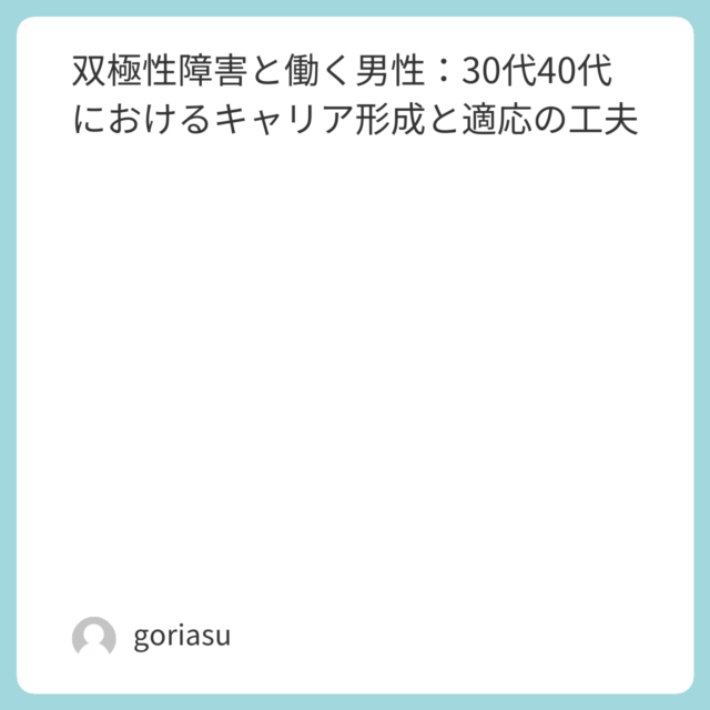 仕事 双極性障害と働く男性:30代40代におけるキャリア形成と適応の工夫